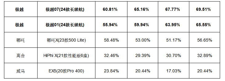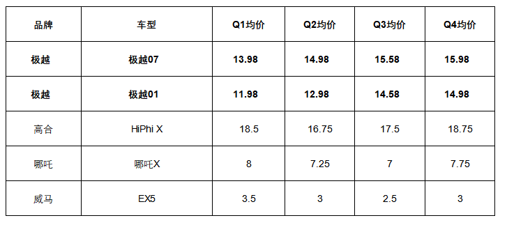 数据说话:逆境中的“独立行情” 我们调取了2025年Q1至Q4的市场交易数据,将高合、威马、哪吒、极越四个处于舆论风口浪尖的品牌进行横向比对。结果清晰地显示,极越的市场表现堪称“反常”。